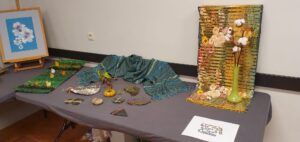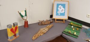 In de Ark was een tentoonstelling van weefwerken van veel weefkringen. Ook van weefkring Woerden was er een bijdrage. Een tafel in de hoek werd voorzien van verschillende weefwerken met het thema Natuurlijk!